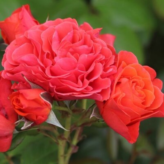 Очень необычный сорт с красивым ярко оранжевым цветом. Цветы необычной формы где цветок собрат как гвоздичный бутон, цветы собраны в небольшие соцветия. Куст компактный с плотной темно зеленой листвой.