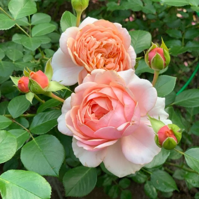 Нежнейший цвет персиково-абрикосовый переливается во множестве лепестков. Цветы старинной формы собраны в пышные соцветия. они обильно покрывают куст и очень гармонично смотрятся на фоне зеленой листвы. Сорт отлично подойдет для драпировки больших объемов, для создания композиций из роз нескольких сортов и как солист на клумбе.